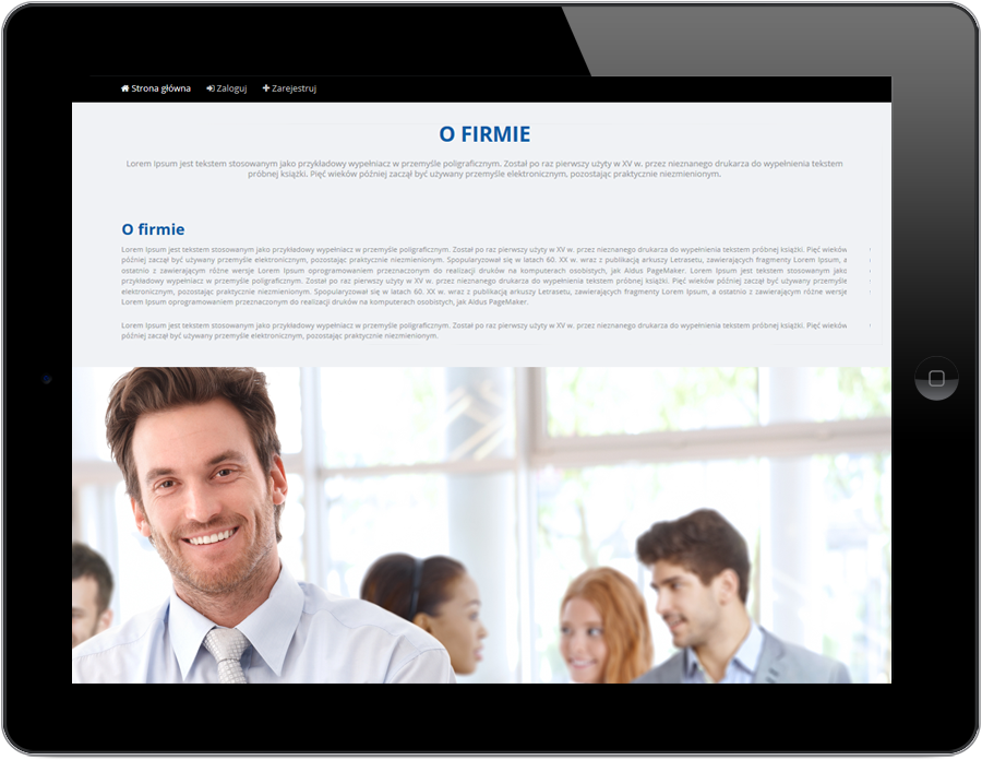 Dzięki zastosowaniu rozwiązań Responsywnych wygenerowana strona jest przystosowana zarówno do komputerów stacjonarnych i netbooków jak i urządzeń mobilnych w postaci tabletów i smartfonów.